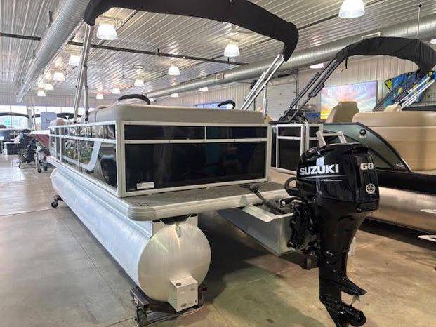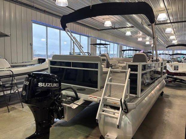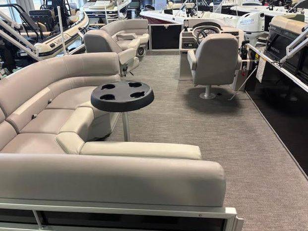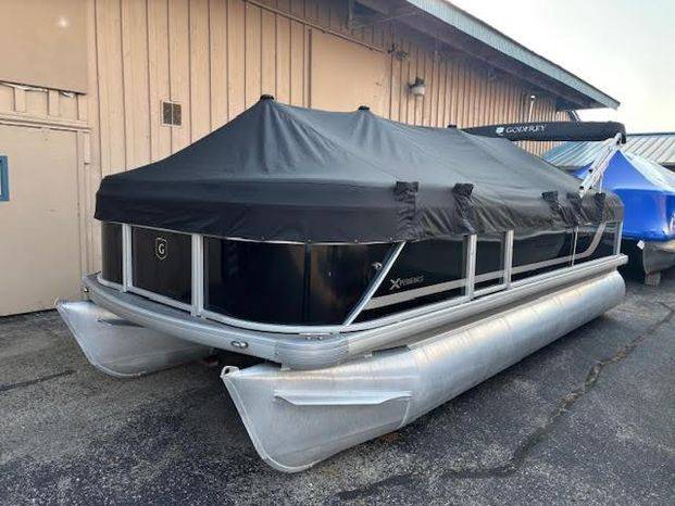 Check out this Demo 2024 Godfrey Xperience 2086EX Cruise in Black with a Suzuki 60hp 4-Stroke engine, Canopy w/ protective boot, playpen cover-black, Keel strips, Silver corner castings, Silver EZ climb ladder, LED docking lights, Rail skin color-black, Stainless Steel fixed cleats, Full flooring-platinum weave, Captain/co-captain's chair-swivel, slider, reclining, fold down arms, 2 movable cupholders, Round stern table, Extreme steering w/ tilt wheel, Fusion stereo w/ 2 grey speakers, Windscreen, Wireless phone charger-gimbal mount, and Much More!