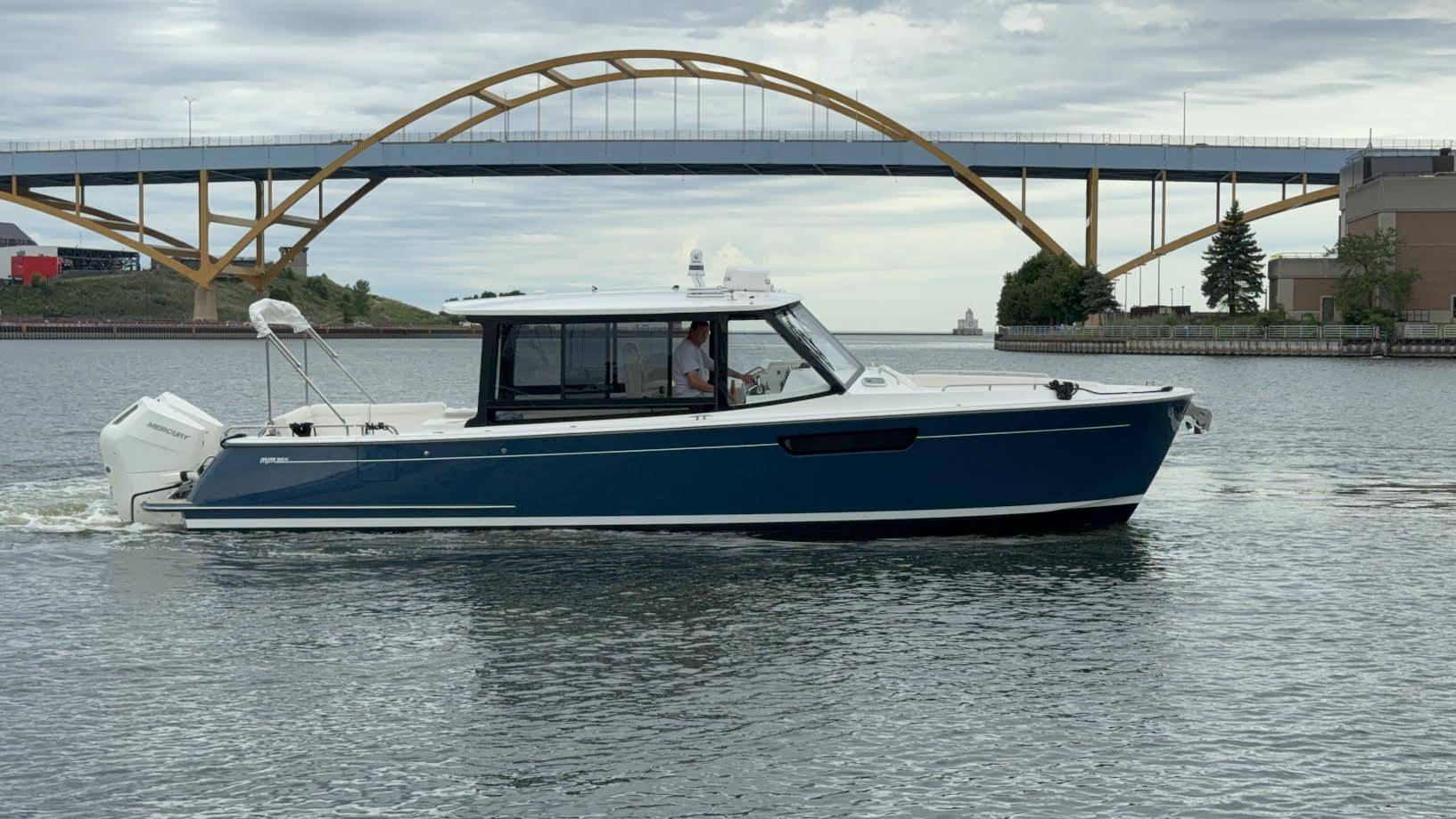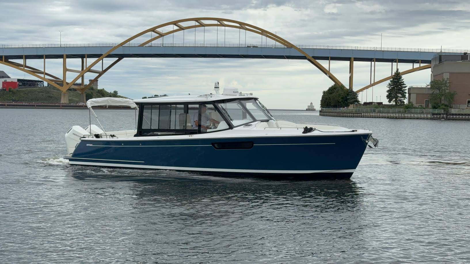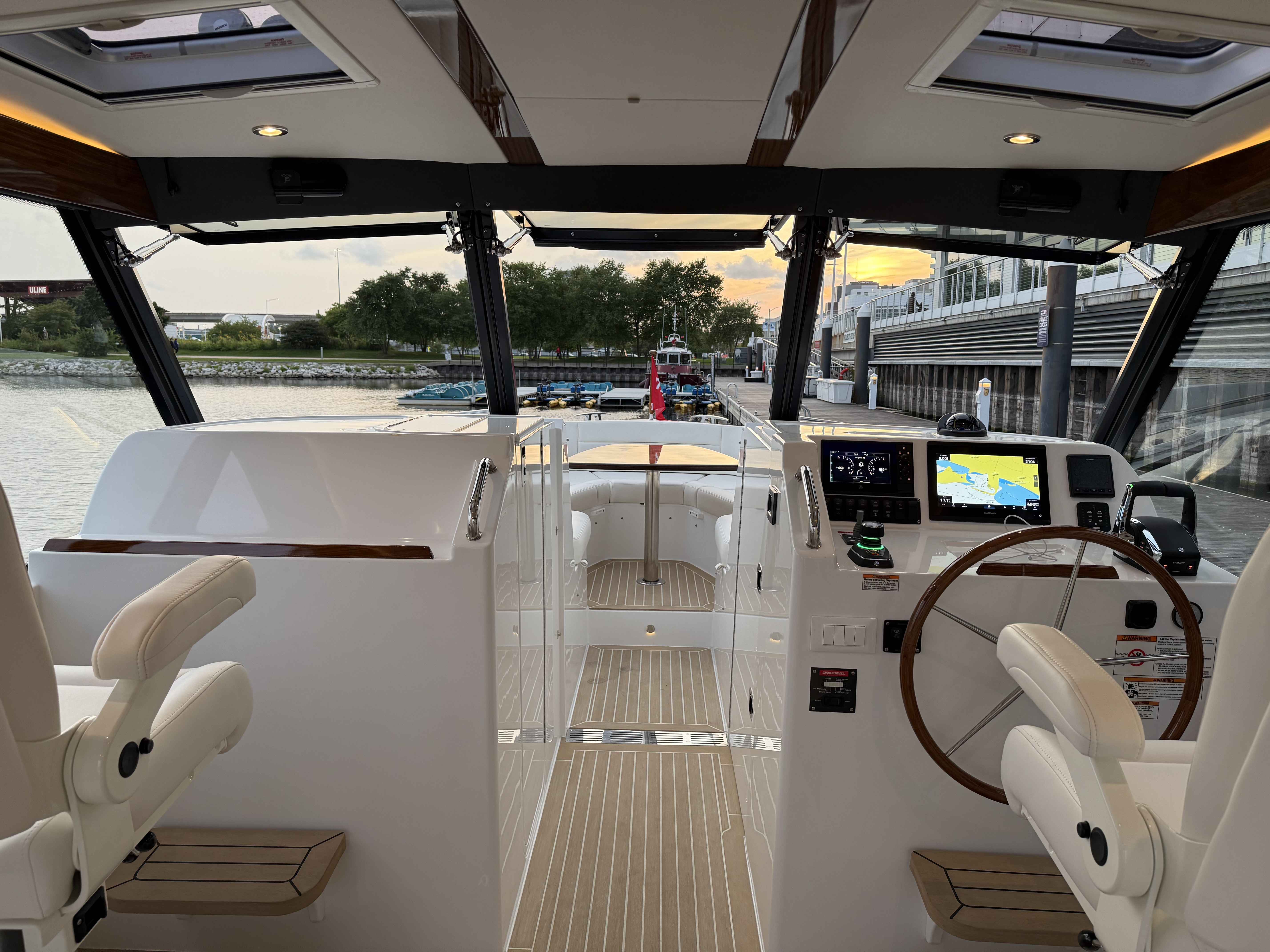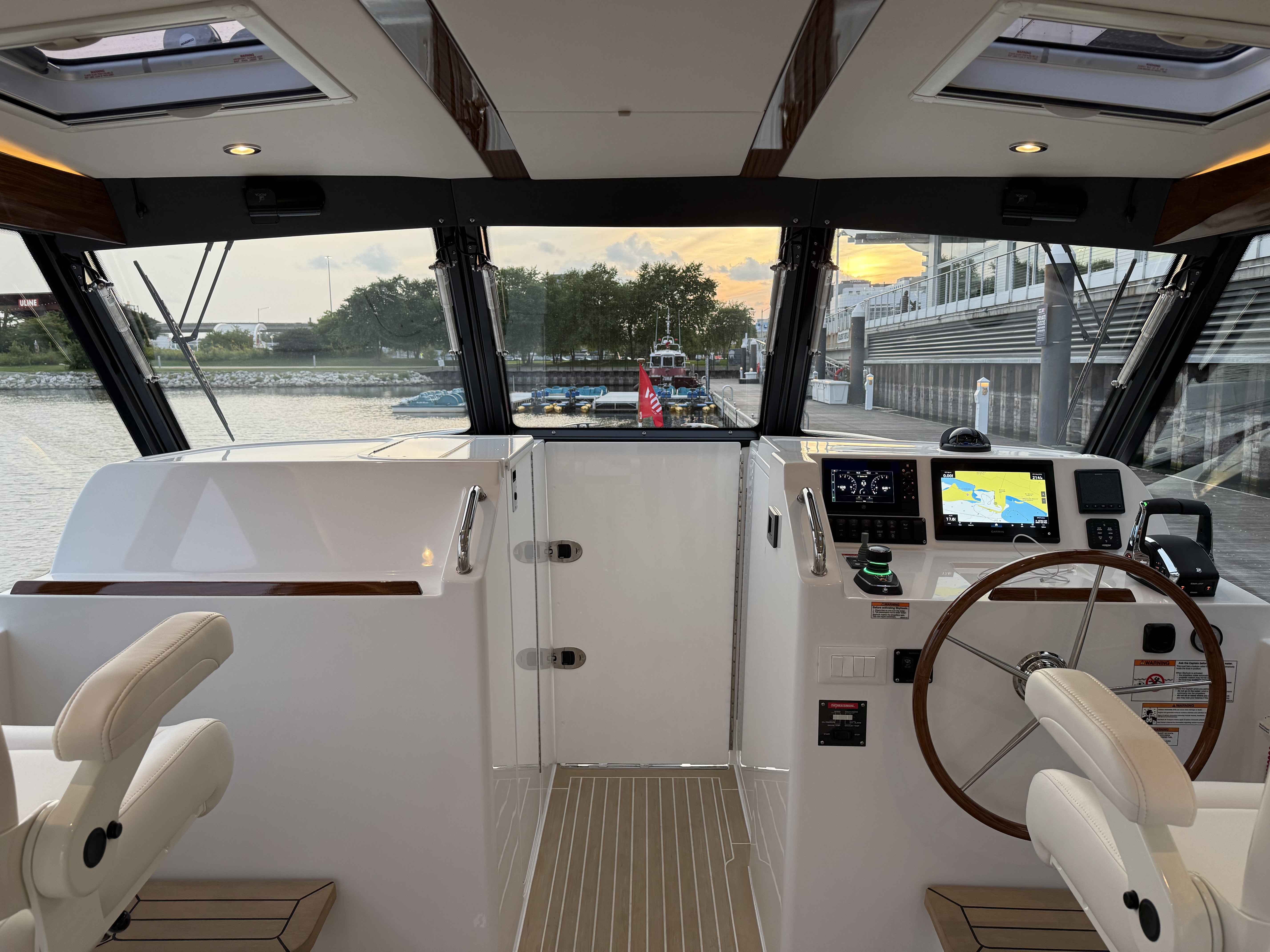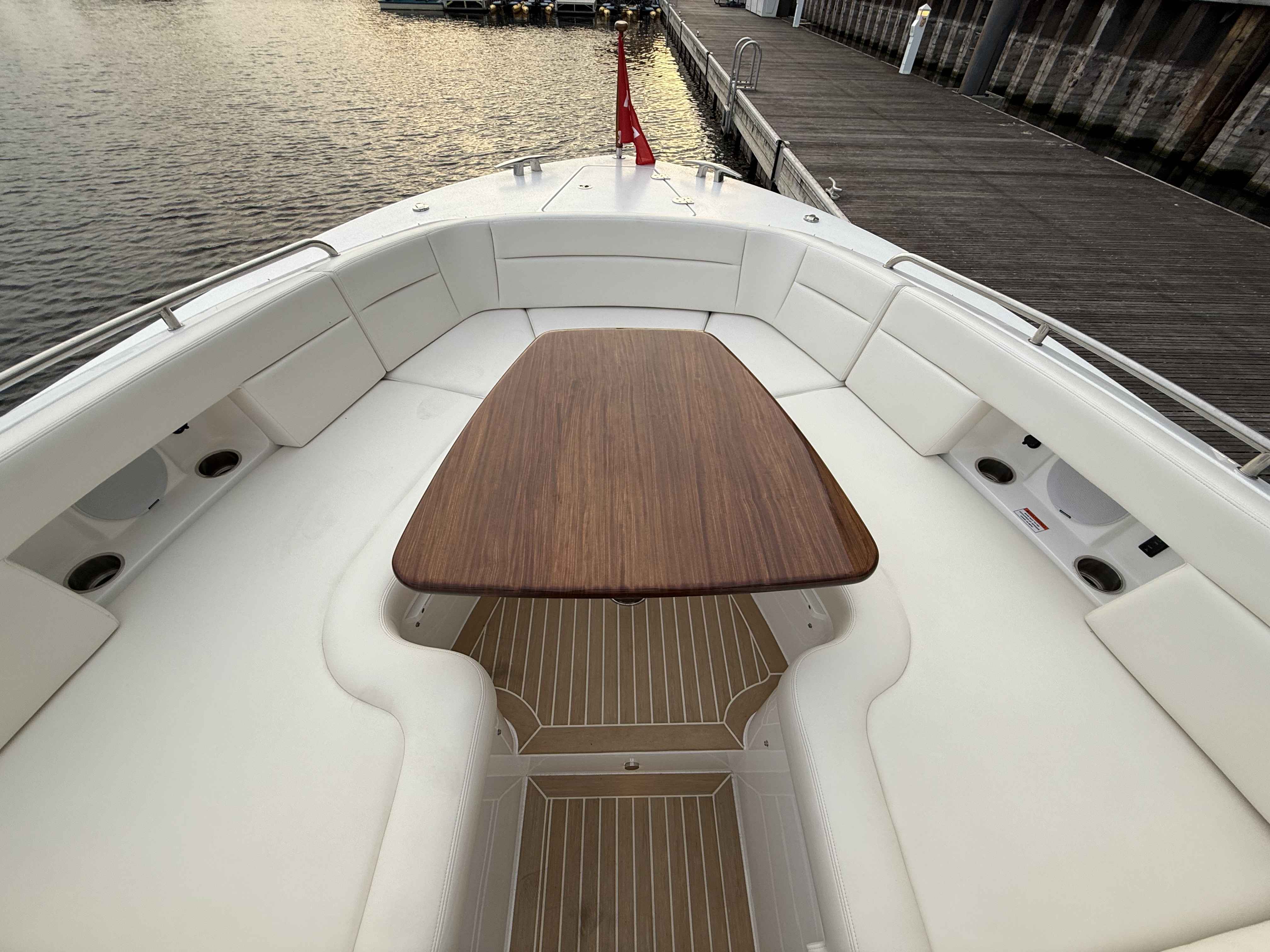 This elegant MJM 38X just arrived to our Milwaukee showroom and is stunning at every look. Please excuse the plastic covering the upholstery. We want to preserve the fresh from the factory condition of this vessel! Visit us now to witness what separates MJM from the rest.
