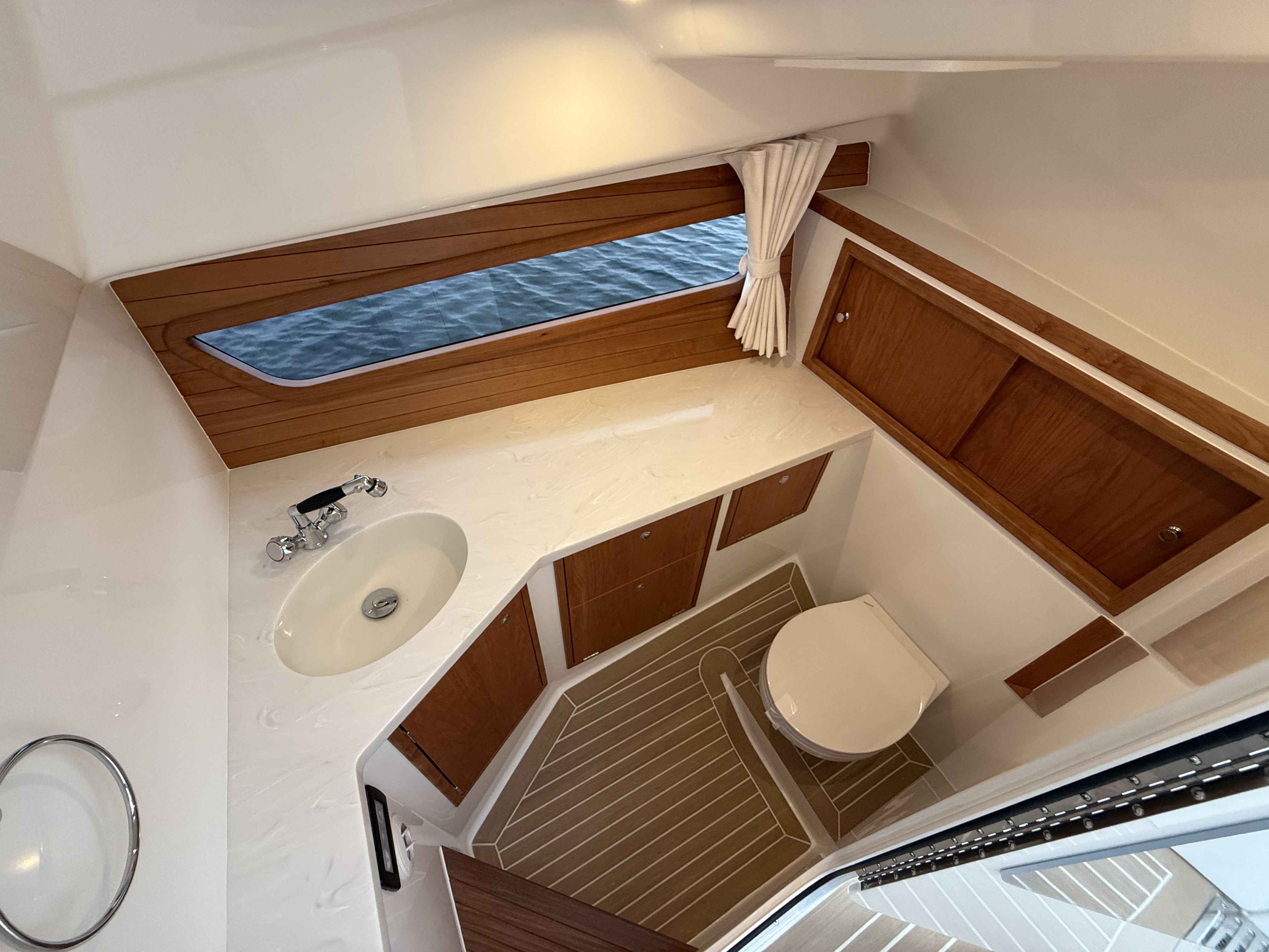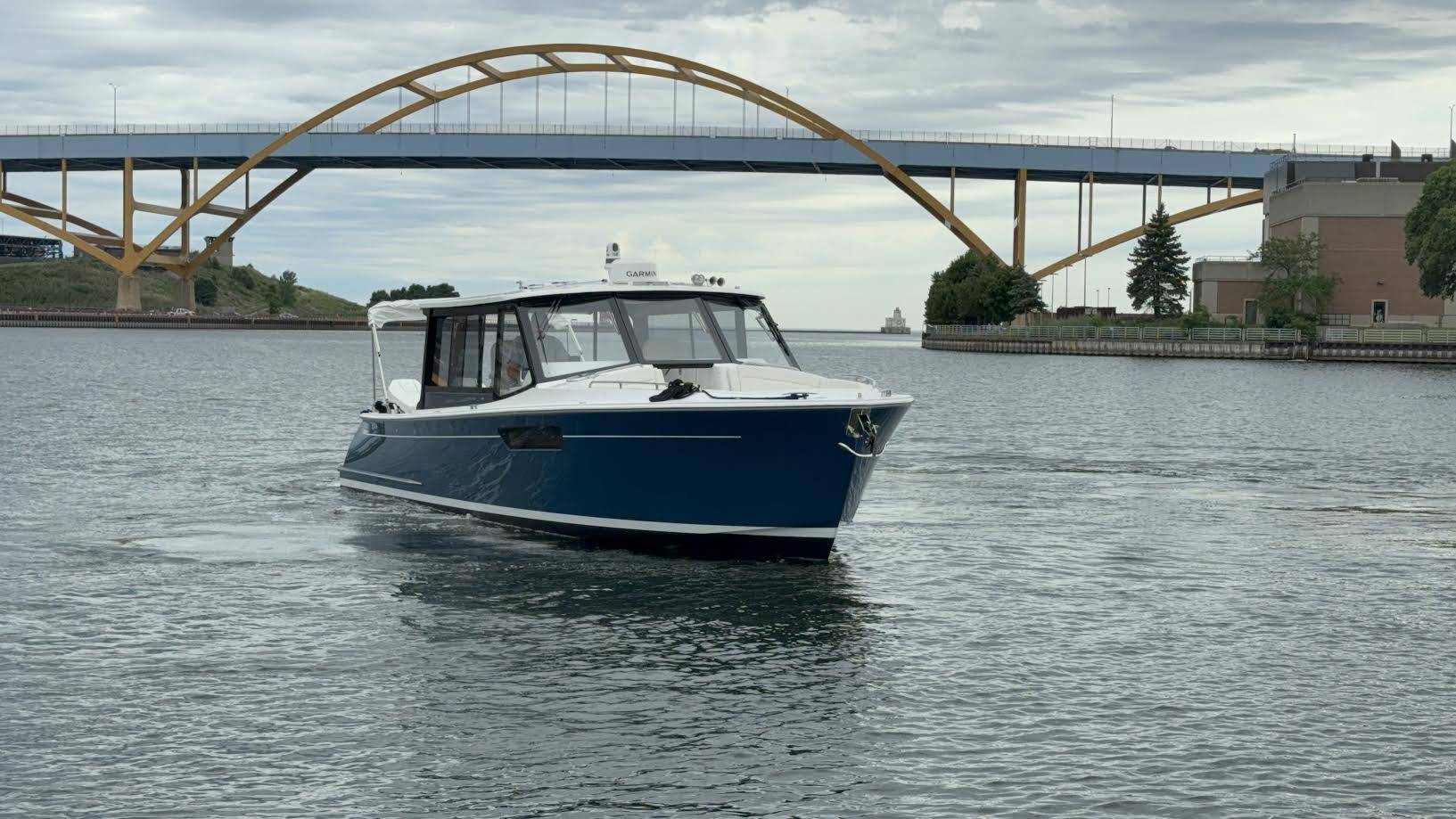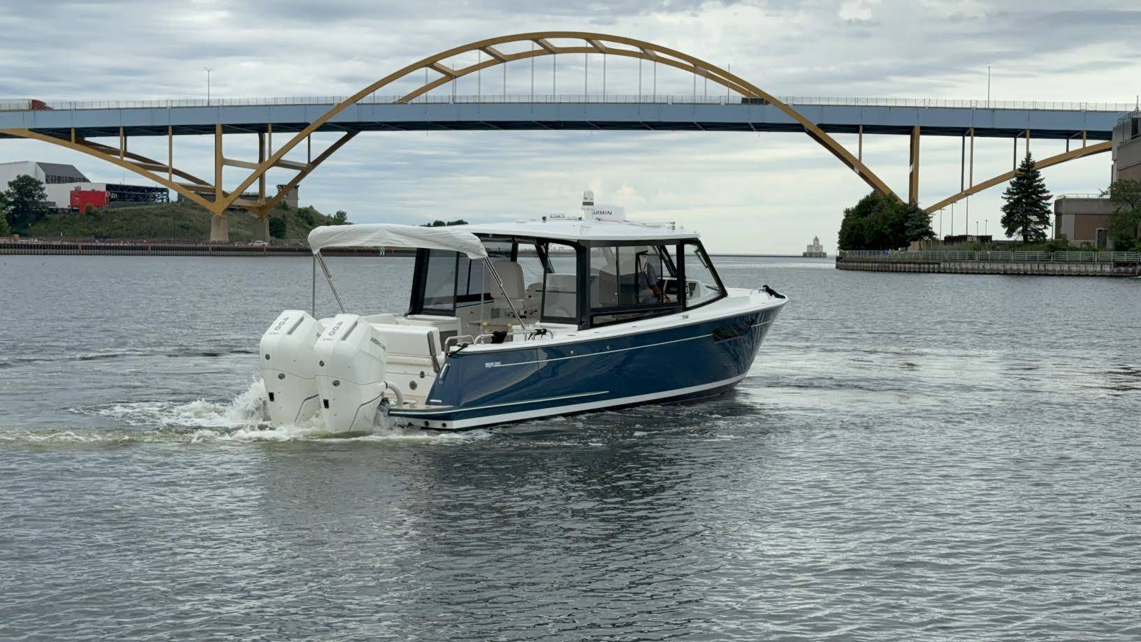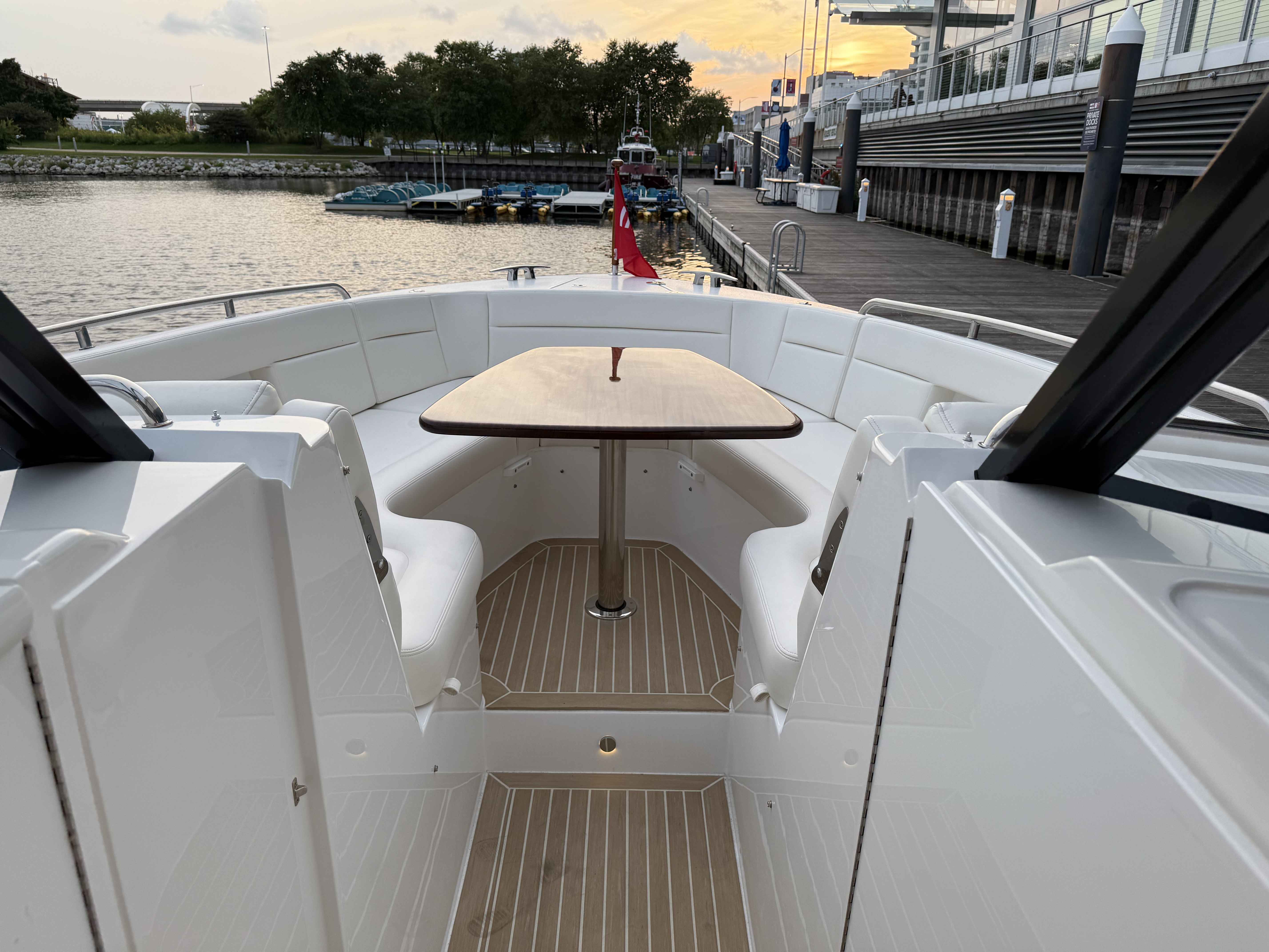 This elegant MJM 38X just arrived to our Milwaukee showroom and is stunning at every look. Please excuse the plastic covering the upholstery. We want to preserve the fresh from the factory condition of this vessel! Visit us now to witness what separates MJM from the rest.