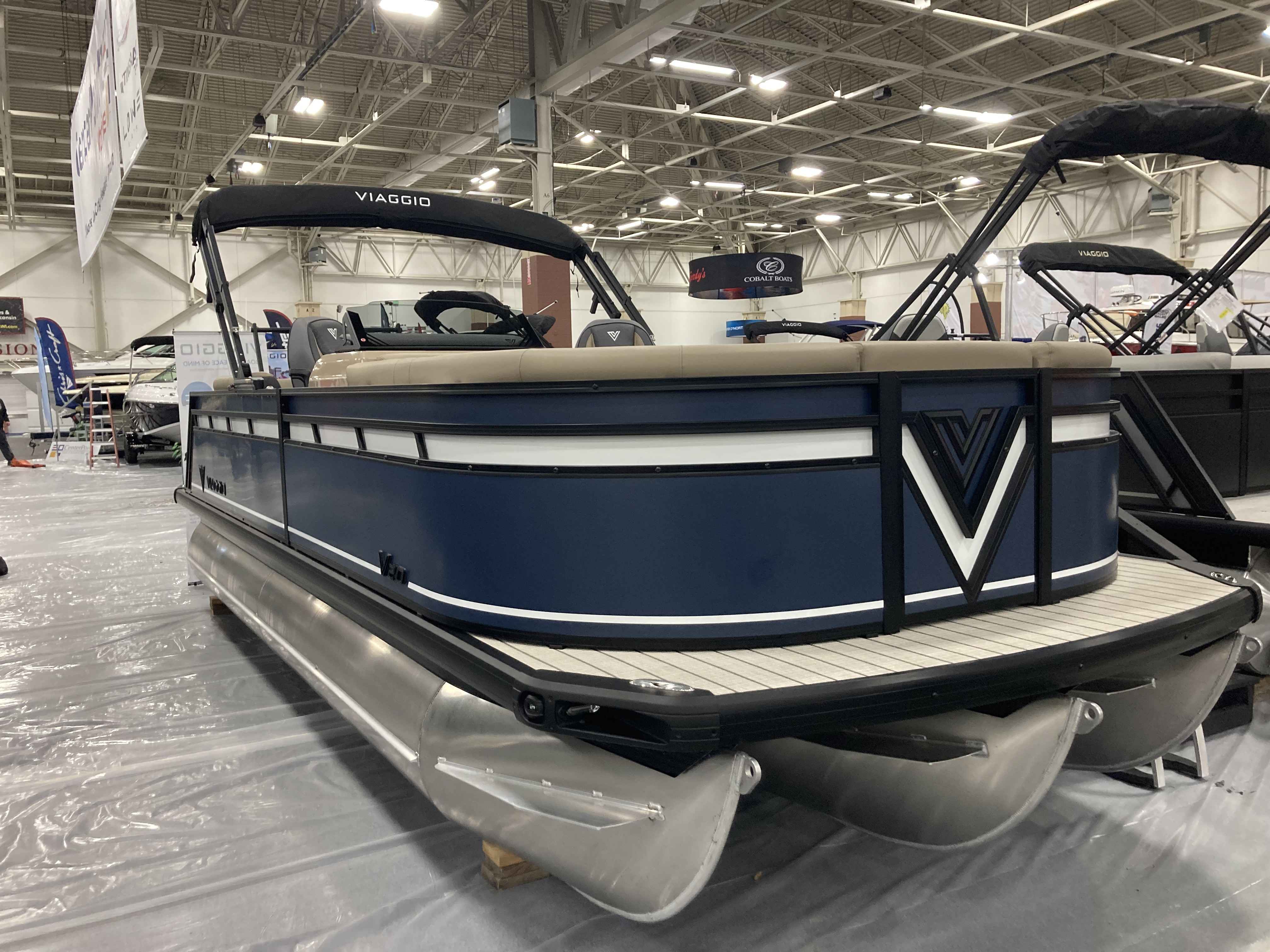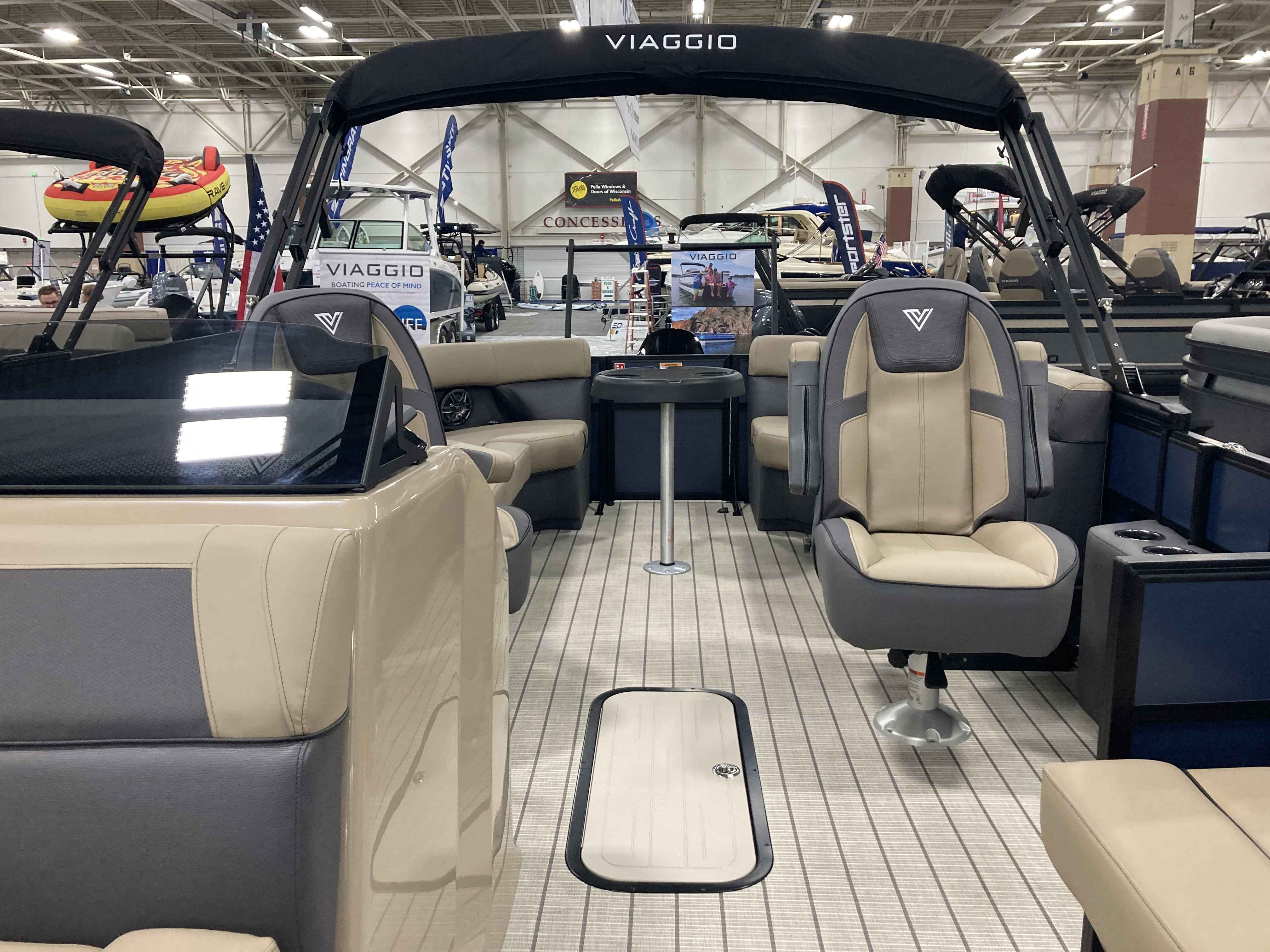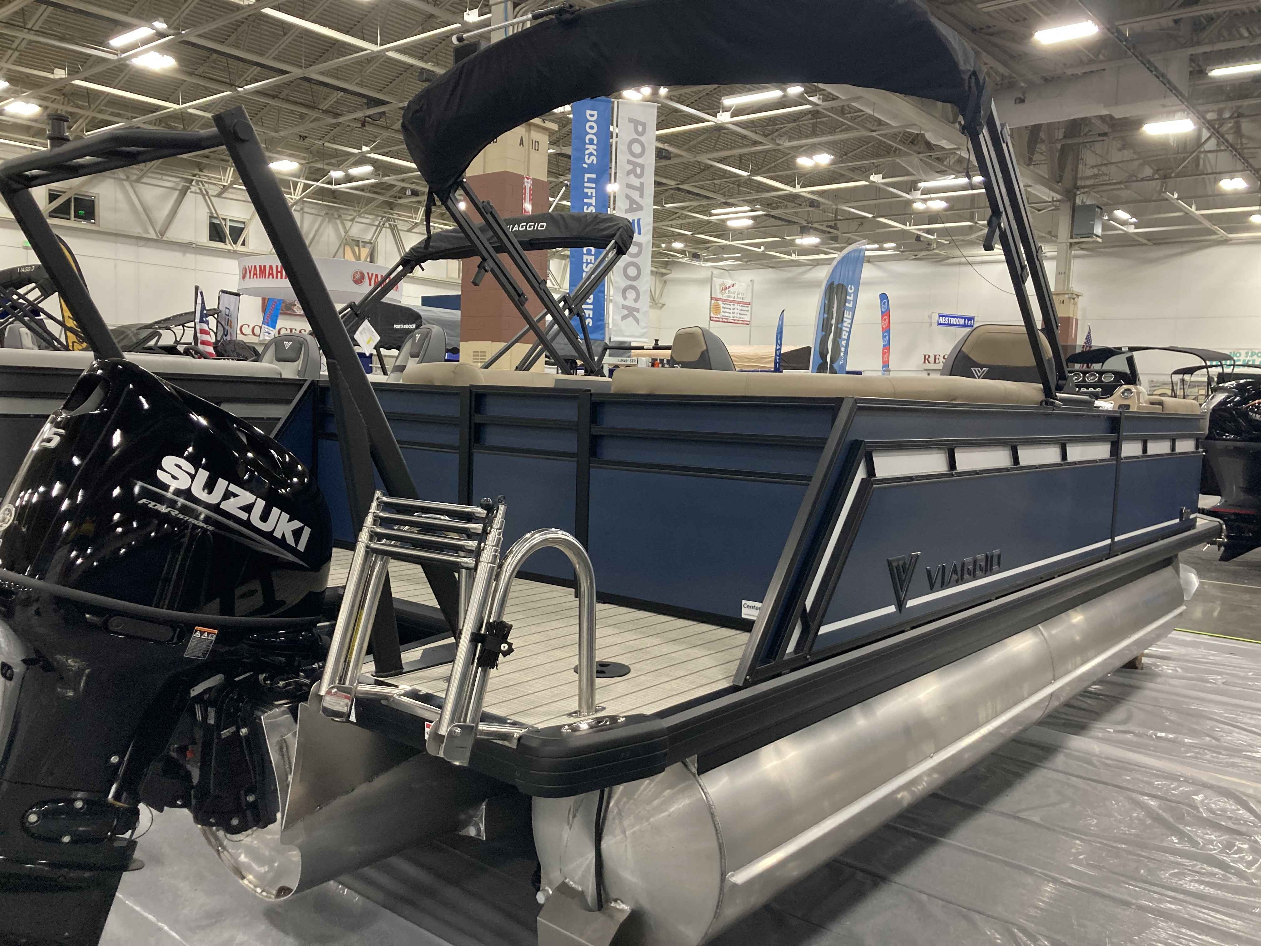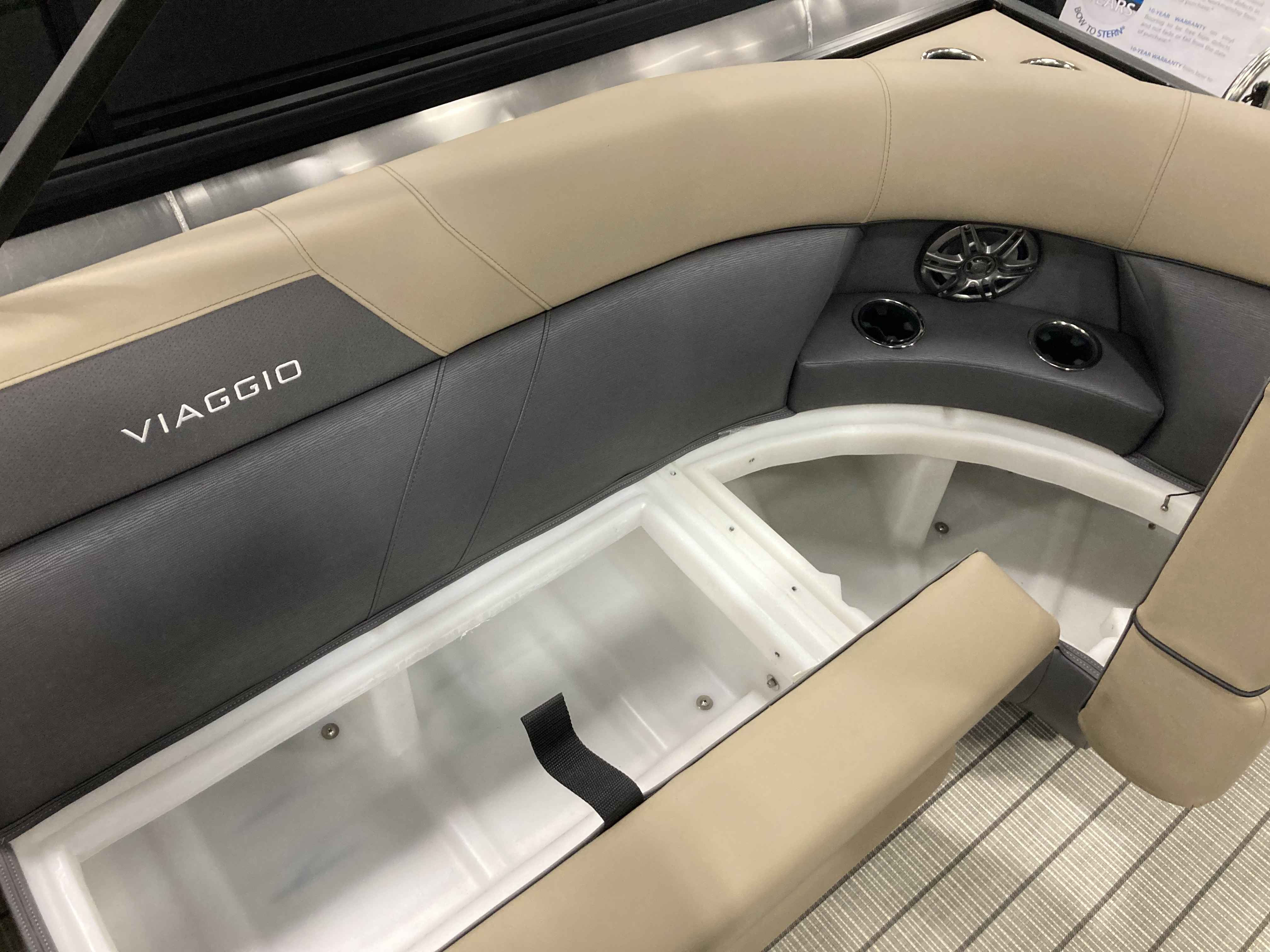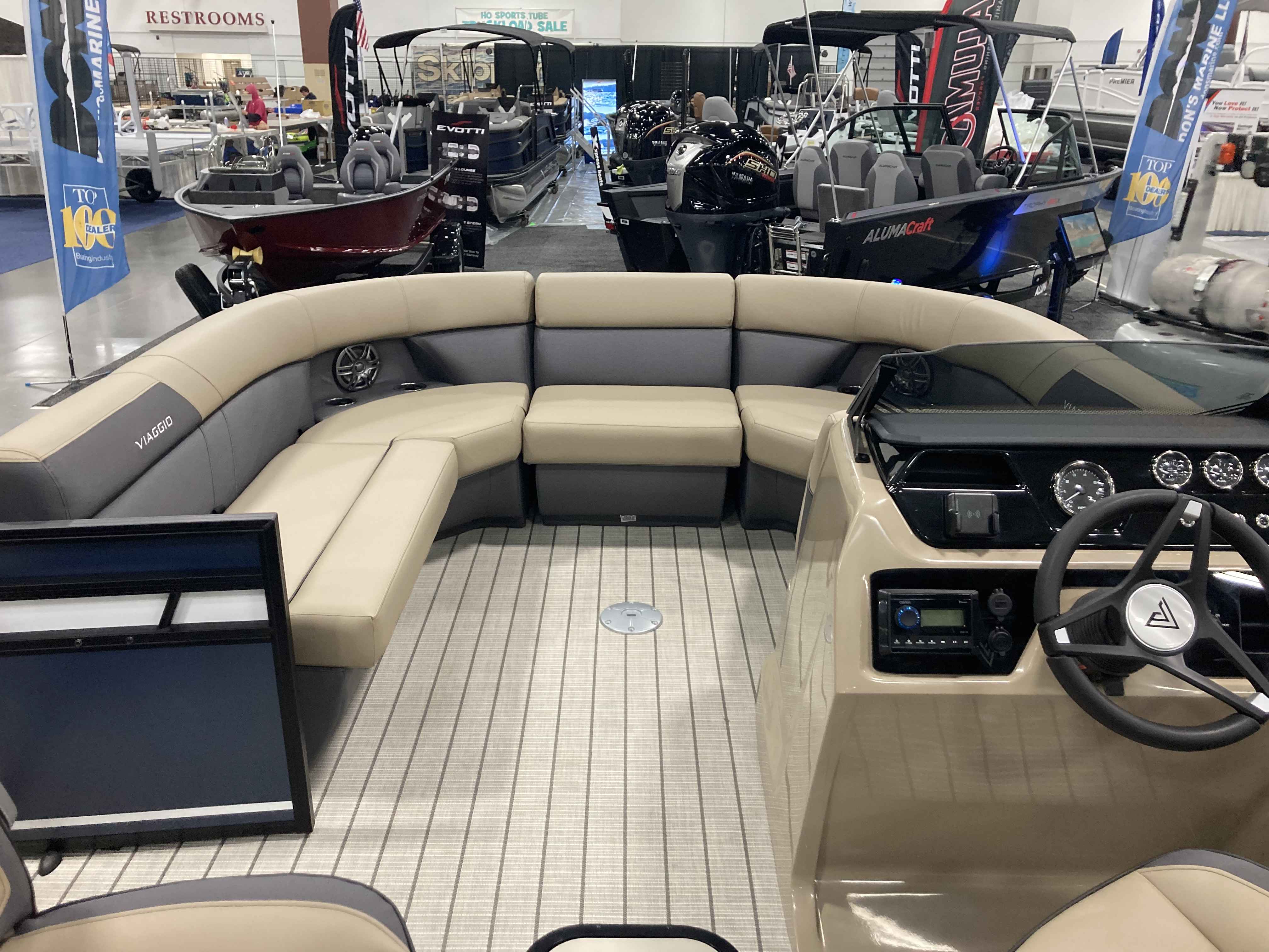 The 2026 Viaggio V20U Tritoon is a 20-foot pontoon designed for versatile lake fun, combining sleek looks with performance, featuring three large tubes (25"), hydraulic steering, and performance shields for stability, powerful outboard options plus comfort amenities like premium flooring, audio, USB ports, and ski tow bar, all built with durable aluminum for cruising, watersports, and entertaining with family.