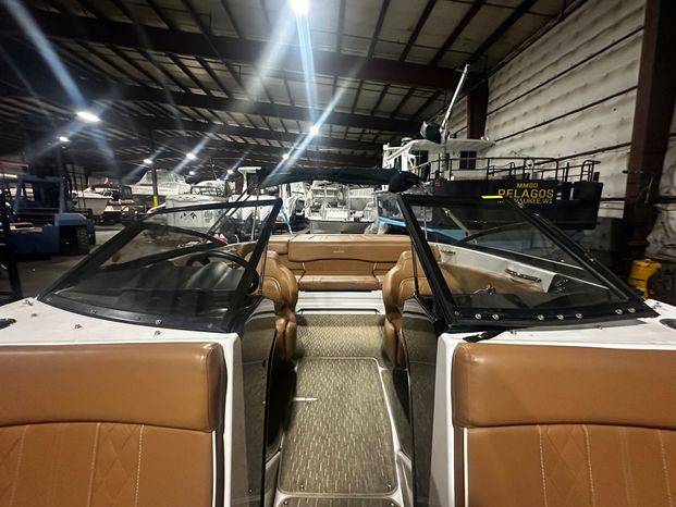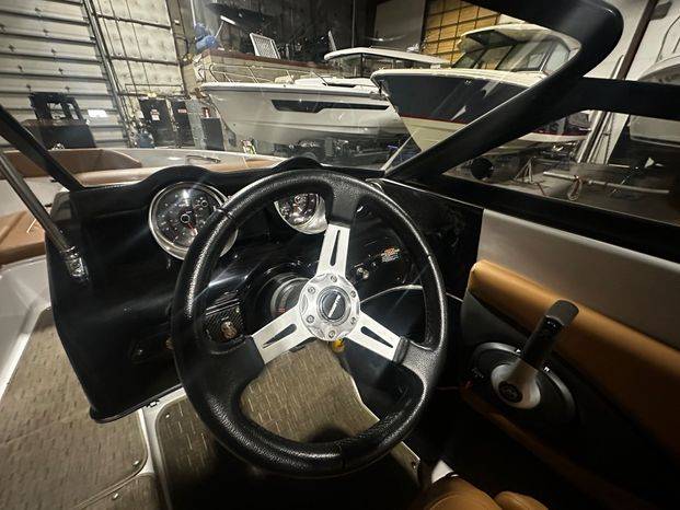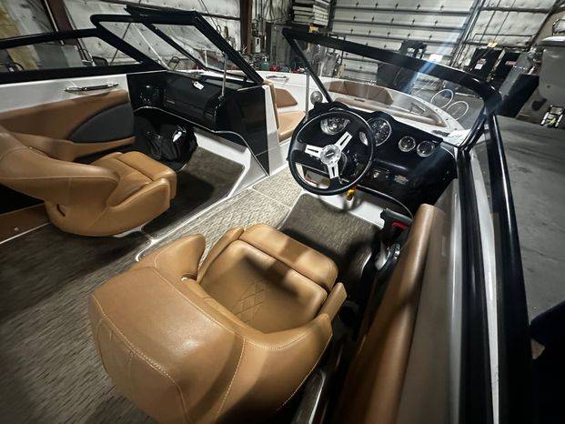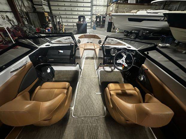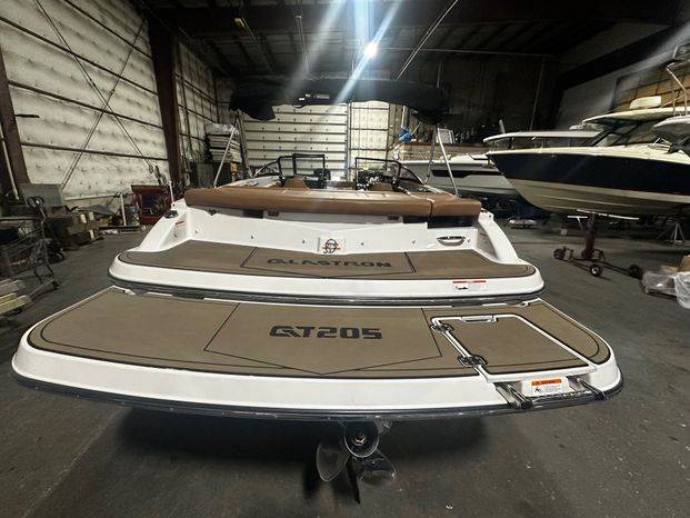 Fresh Trade! This 2018 GT205 has been freshly buffed and detailed. She is powered by a Mercruiser 4.5L paired with an Alpha One Outdrive. This Glastron has plenty of power for on the water activities with plenty of interior space for entertainingas well. Her Mocha interior upholstery and woven seagrass flooring is in excellent shape. She is also outfitted with a full cover, bimini top and has a Bluetooth stereo. The boat is currently accessible, winterized and located at our indoor heated facility in Milwaukee Wi. A matching single axle trailer is also included. Set up an appointment today!