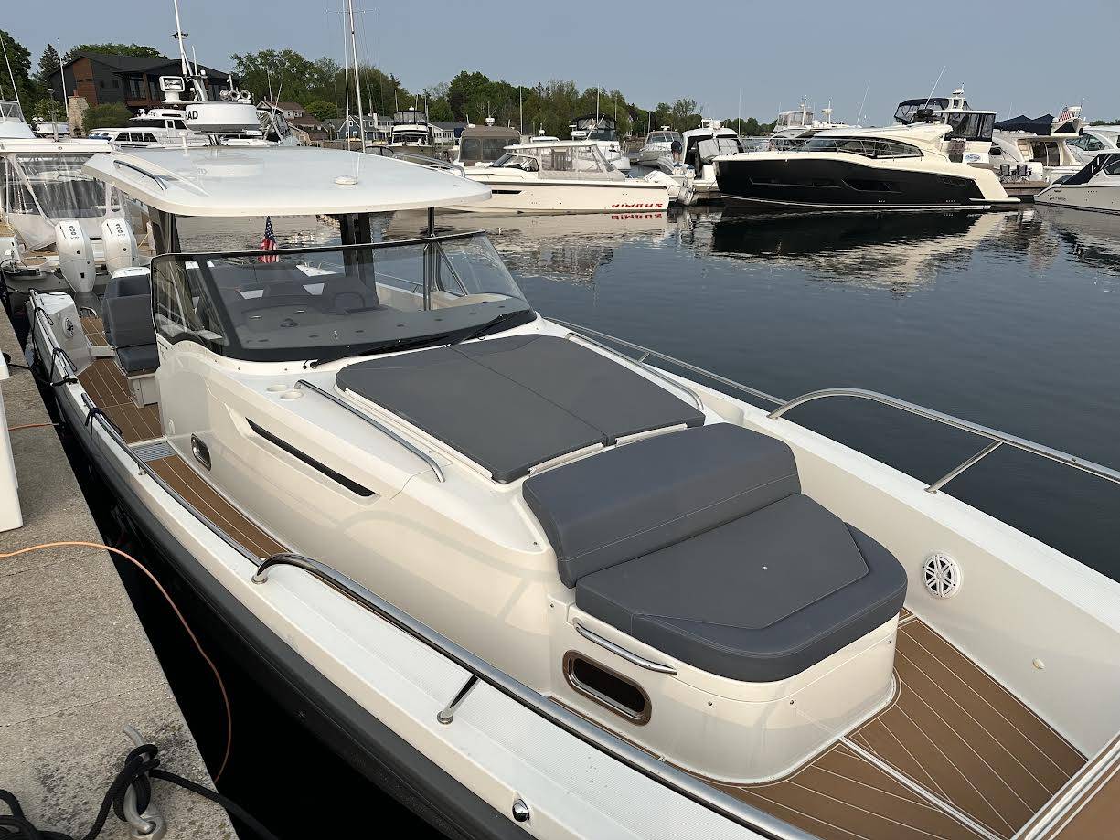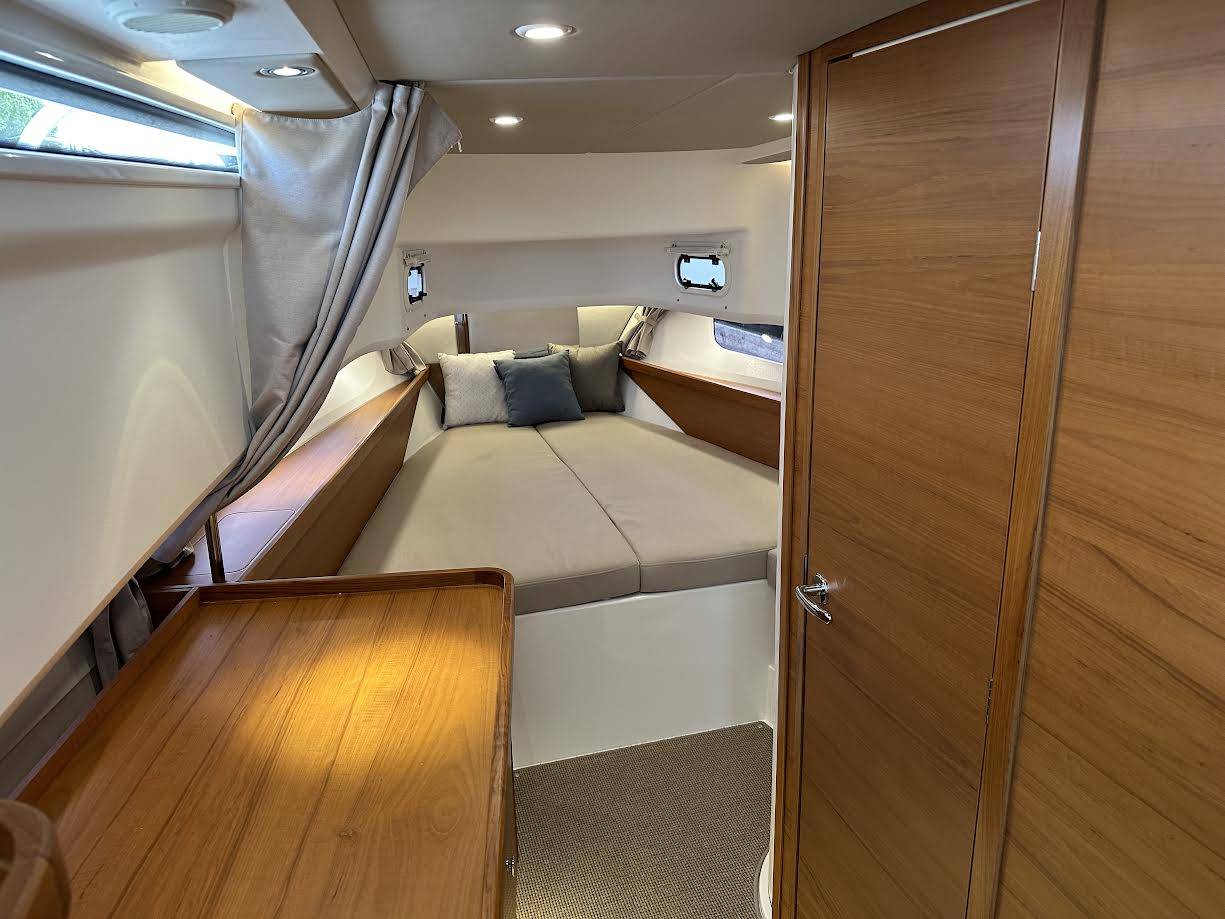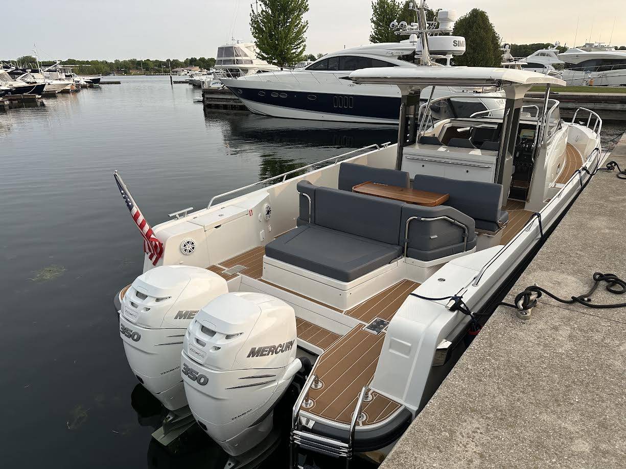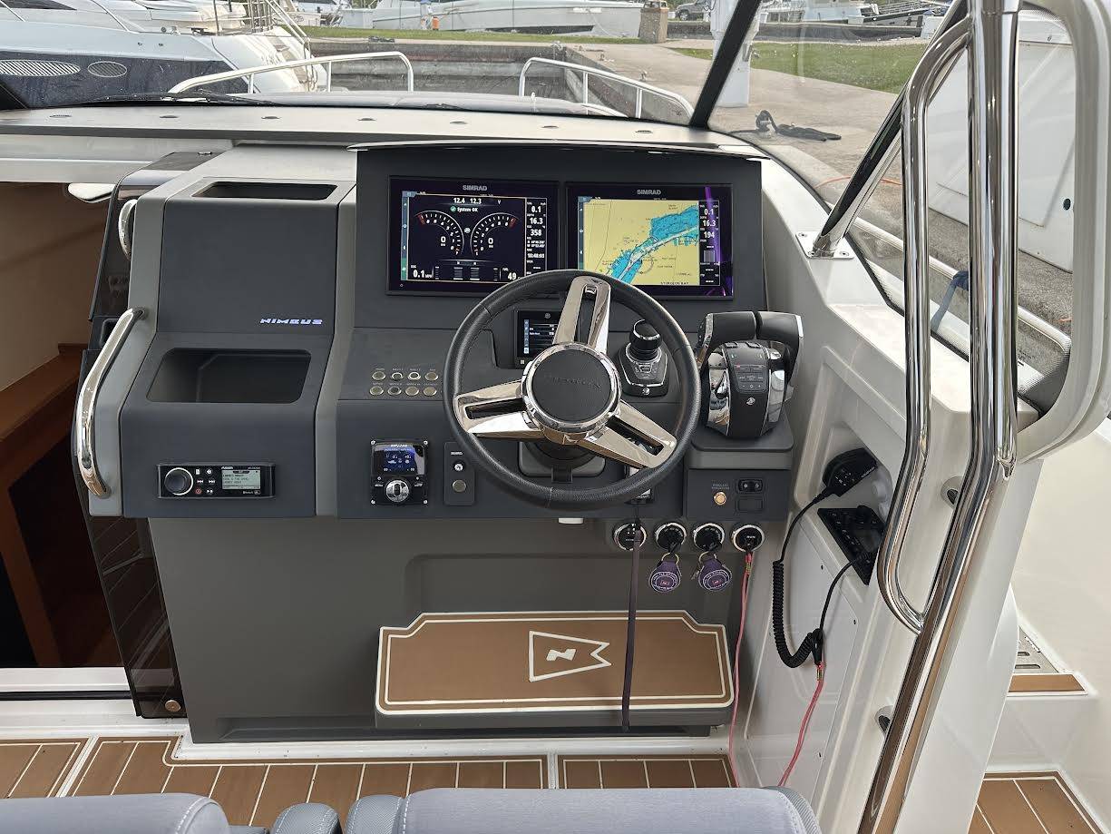 2x Mecury Verado 350 w/JPO Mercury anti theft fob system Nimbus T Top White hull Mercury upgrade pkg, vesselview 403, vesselview mobile, active trim Cutlery set Nimbus Outdoor galley, cook top, cold water, fridge 70L Outdoor galley extra freezer 70L LightDek full floor pkg (light grey with grey caulking) Staircase wardrobe closet Pillow set Nimbus Cushions cabin Sunbrella beige Cushions outdoor Blue Storm Canopy mooring kit Sunshade aft deck electric Carpets cabin beige Bow Thruster Sleipner SE 100 Zipwake dynamic trim system Windlass Bow Lewmar V1 Remote control, bow thruster and anchor winch Mooring pkg incl. Nimbus fenders and dock lines Underwater lights, blue Stereo pkg high end Shore Power 110V Hifi DAB unit Twin Simrad Go12 Simrad Sonar, Active Image Simrad VHF RS 40 incl. AIS Simrad Radar Halo 24 Antifouling  Fitted bow cover, cockpit cover, aft seat covers.